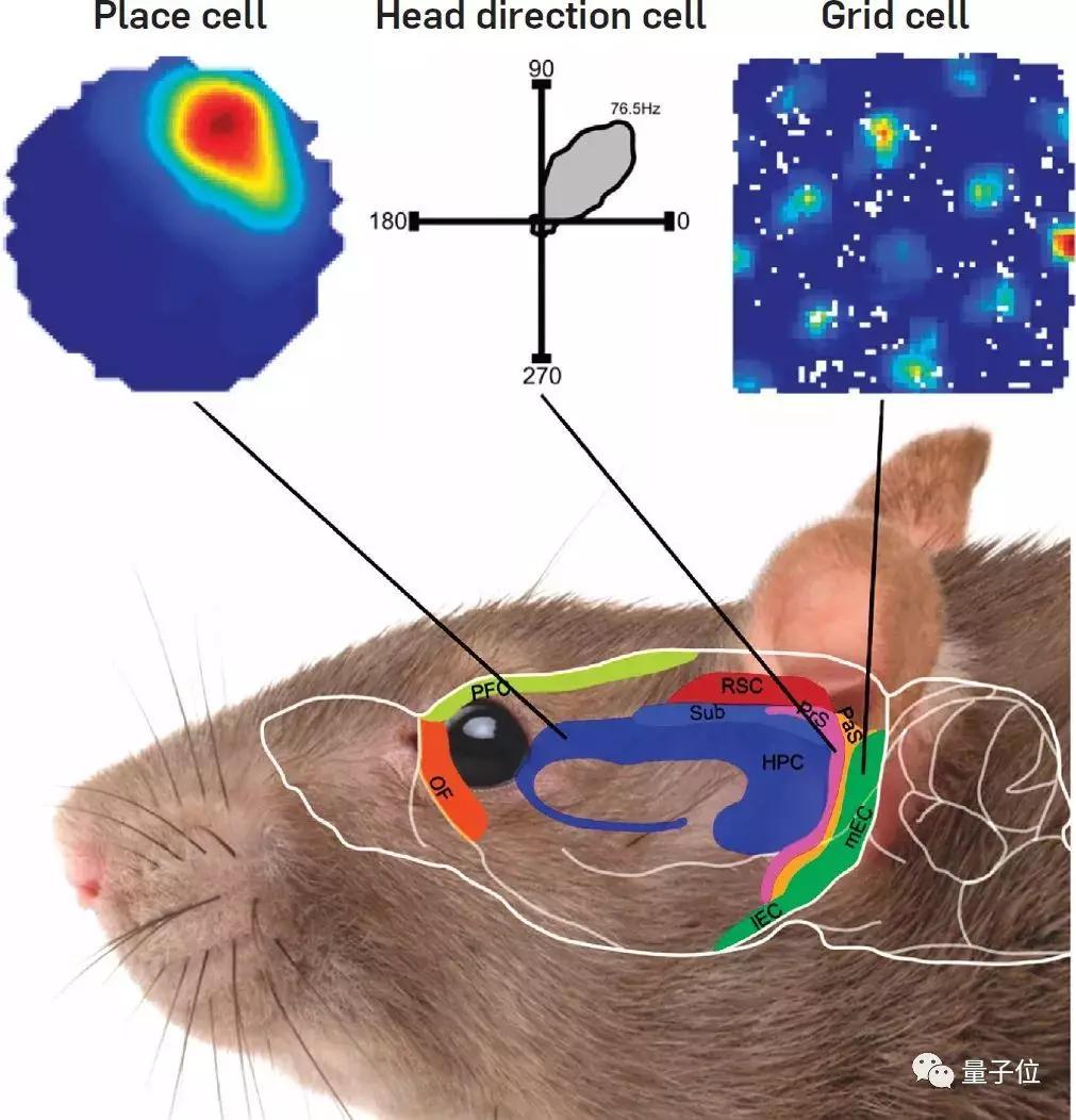 定位细胞(place cell):识别身处的位置;网格细胞(grid cell):打坐标轴、画网格;定向细胞(head direction cell):识别方向;定界细胞(boundary vector cell):了解相对距离。