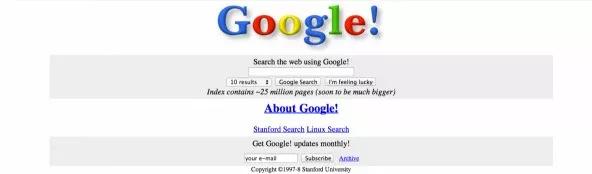 98年第一版的Google!模仿Yahoo!也有个感叹号