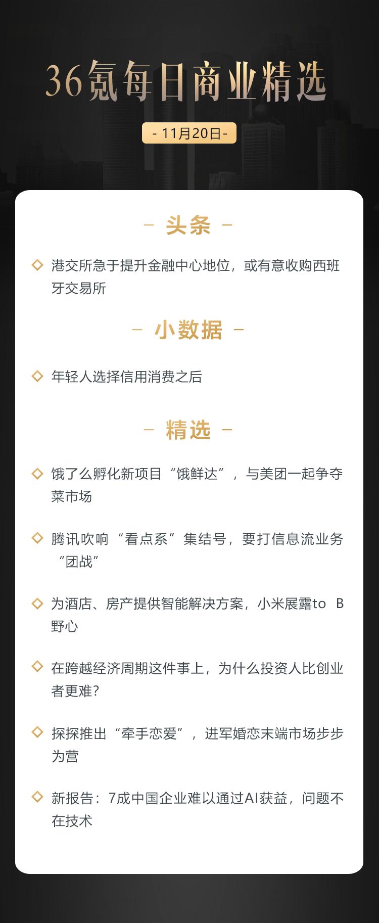 本文来自36氪付费栏目《36氪每日商业精选》——11月20日