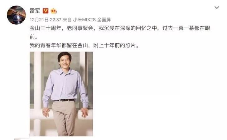 2018年12月,金山30周年,雷军连续几天在微博里怀旧,回顾当年奋斗的岁月。