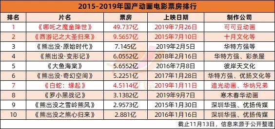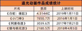 业界有一个直观的例子,打造了《白蛇:缘起》的追光动画,近几年主要有以下四部电影作品: