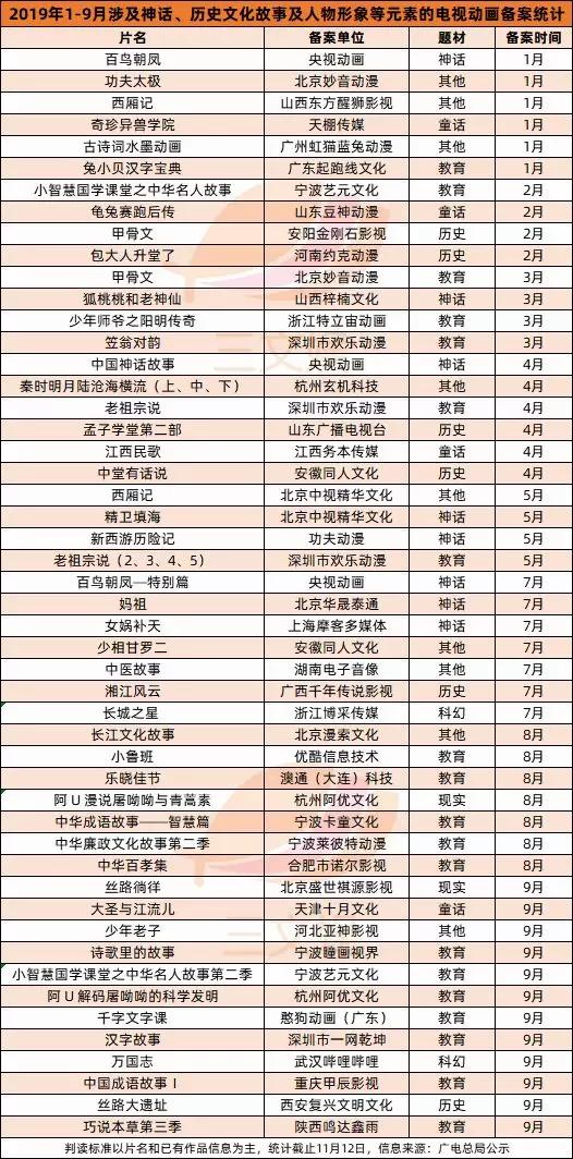 三文娱在统计截至最近披露的动画电影、重点网络动画、电视动画项目时发现,涉及神话、历史人物形象等传统文化元素的作品数量非常可观。