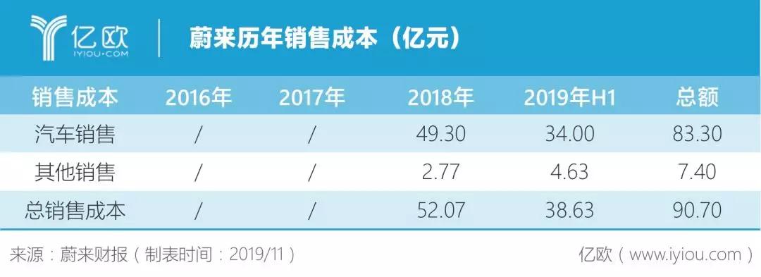财报显示,2018年至2019年Q2,蔚来的销售成本累计达90.7亿元,平均到一台车上约48.01万元。这意味着每卖出一辆车,蔚来仅在销售方面就要为此支出近50万人民币。