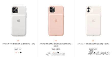 11月21日,苹果上架iPhone 11系列的智能电池壳,可额外为iPhone提供最高50%的电池续航时间。它是官方为iPhone制造的保护壳+外挂电池双重功能产品,本次更新主要为适配今年新品iPhone 11系列。加入了单独拍照按键,无论手机是否解锁都可进行拍照或录制视频,黑、白、粉砂三色可选,定价1071元。