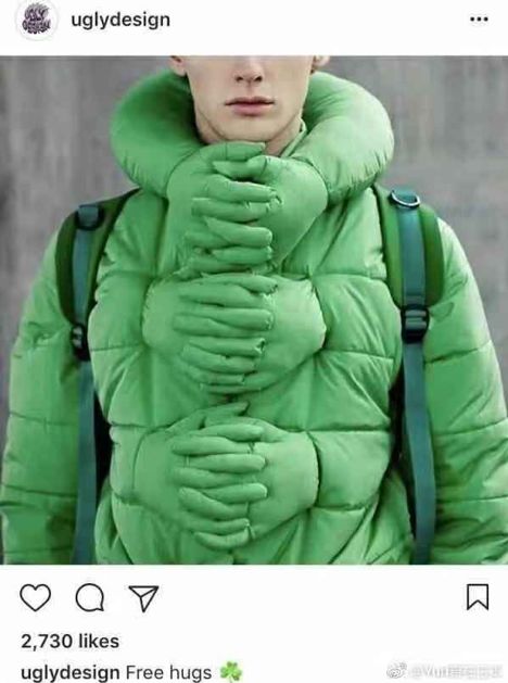 比如这款给单身狗送温暖的羽绒服,没有伴侣的人在冬天也能享受到“爱情”给你带来的暖意(并不)。