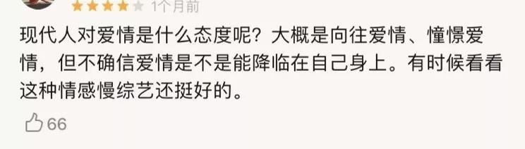 一方面表露出“恐婚”,一方面对情感类节目表示“真香”,这种现状恰恰证明了,婚恋题材和甜蜜生活本身,并不是情感类综艺节目受众所排斥的要点。