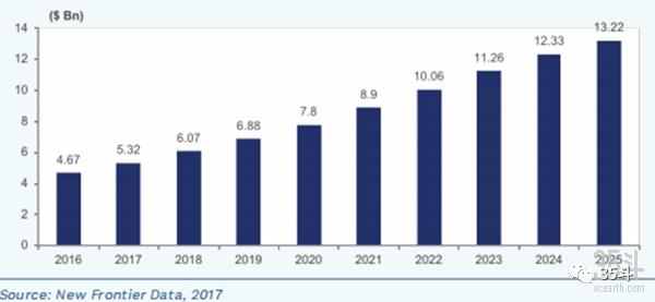 据Grand View Research估计,2015年全球大麻市场规模为114亿美元,预计复合年增长率为17%左右,到2025年将达到558亿美元。随着美国越来越多的州意识到大麻的医疗用途和医疗用途合法化,大麻的医疗用途预计会增加。这与娱乐用途一道,预计将成为大麻需求的主要推动力。大麻相关研发活动的增长也将影响需求。