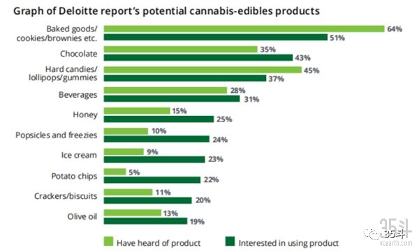 除了用于娱乐和医疗目的的大麻外,还有一系列与大麻相关的消费品,包括饮料(从软饮料、咖啡和催眠茶,到加入大麻的不含酒精的“啤酒”和“葡萄酒”)、可食用食品(如巧克力和零食)和外用药膏。烟草和止痛药生产商也在密切关注这些市场。