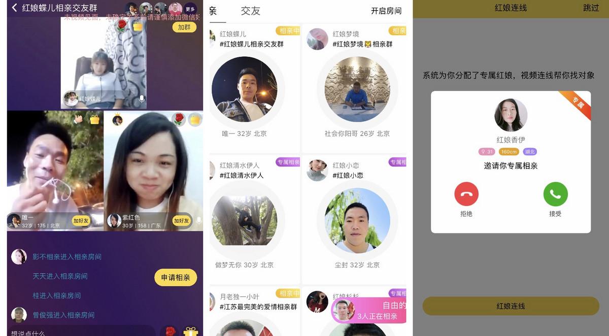 红娘是直播间主持人,也是视频相亲的核心“灵魂”。有了红娘,一方面把控直播间整体聊天进程和节奏,不会让聊天内容跑偏,另一方面,帮助男女双方进行话题的引导和牵线,让大家尽快破冰,拉近彼此距离,避免尴尬。