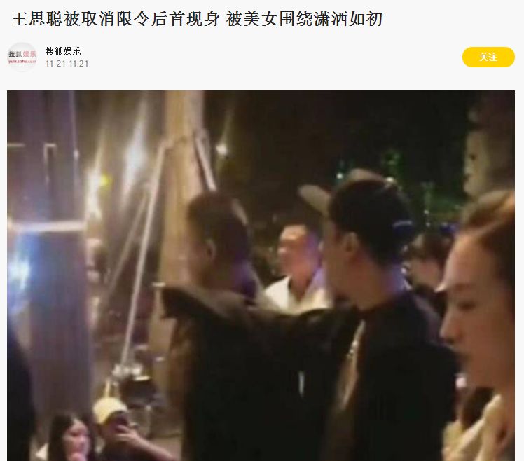 搜狐娱乐称,11月20日晚,王思聪露面。