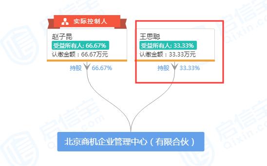 据启信宝信息显示,近期王思聪新增对外投资,入股北京商机企业管理中心(有限合伙),持股比例33.33%。