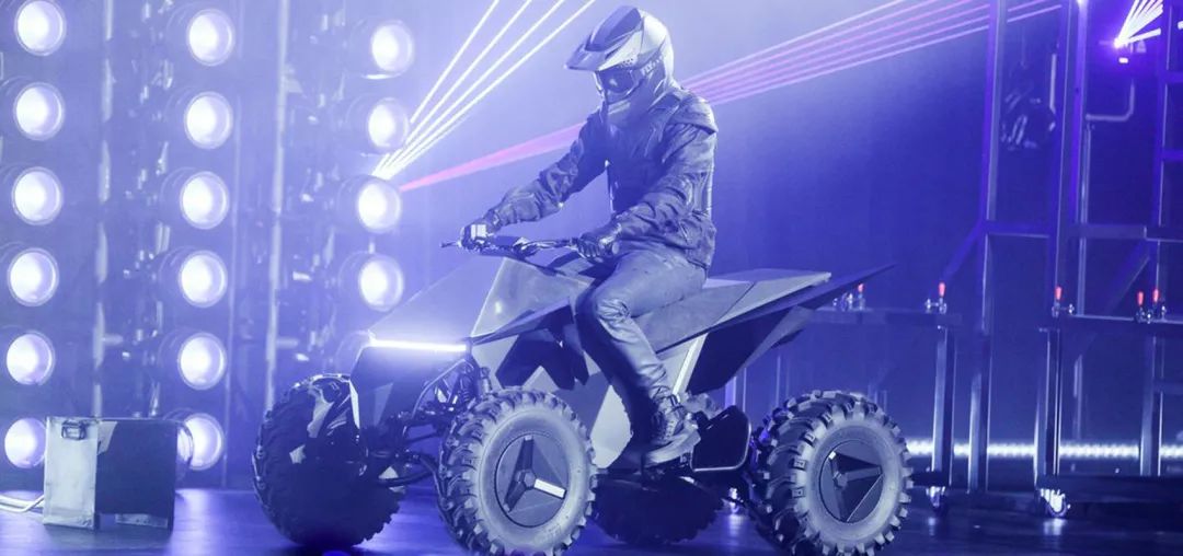 马斯克最后还是说了大多数科技界都熟悉的三个词:「One more thing.」推出了一款电动全地形车(ATV),它可以很轻松地开上 Cybertruck 的后尾箱里,而且可以用卡车为它充电。