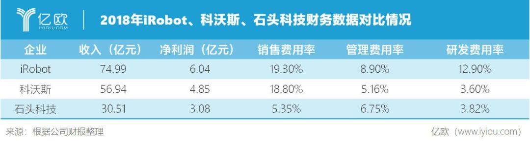 从2018年财务数据来看,iRobot三费率远远高于科沃斯与石头科技,凭借在销售和研发上的持续投入,iRobot形成了产品的技术驱动力和品牌溢价能力,虽产品整体定价显著高于行业,但仍能享受较高的品牌溢价。