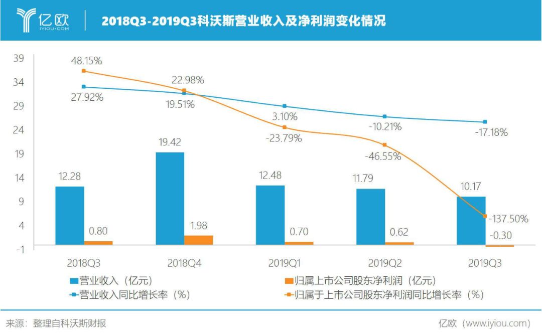 2019年第三季度,科沃斯营收同比下降17.18%,归母净利润跌至负值,同比下降137.5%,这已是其归母净利润连续多个季度下滑。