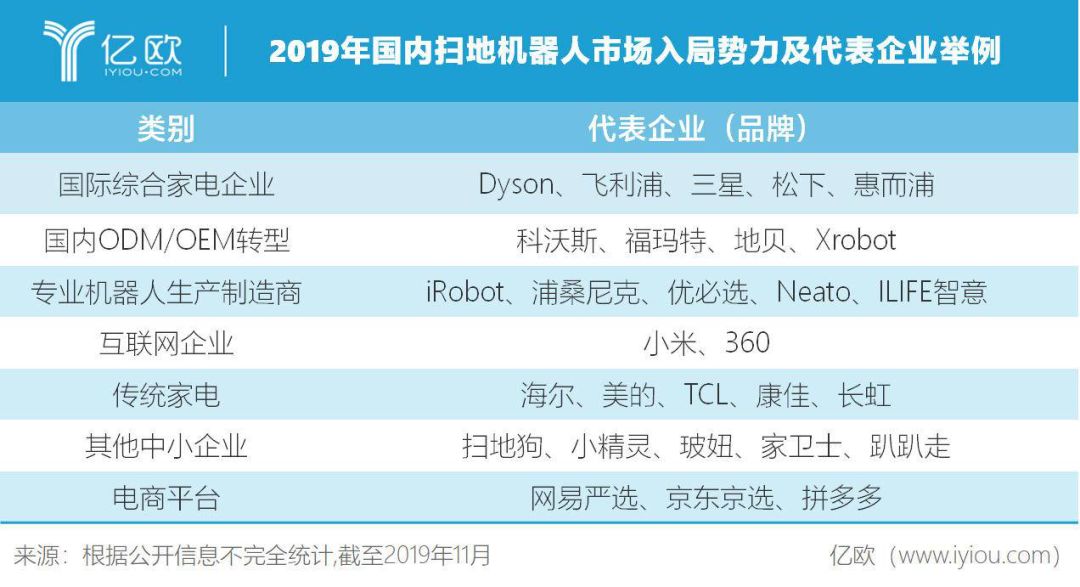 包括国际综合家电企业、专业机器人生产制造商、传统家电巨头、互联网企业等在内的众多势力相继入局。奥维云网数据显示,2019年上半年,扫地机器人线上品牌增加到112个,线下品牌则增长到32个,整个国内扫地机器人市场处于群雄逐鹿的阶段。