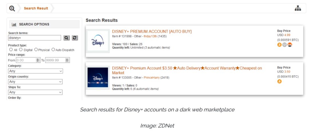 Disney+用户信息在暗网上低价售出,来源:ZDNet