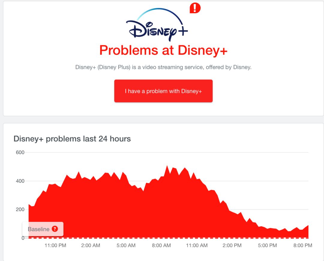 Disney+用户报错率居高不下,来源:downdetector网站