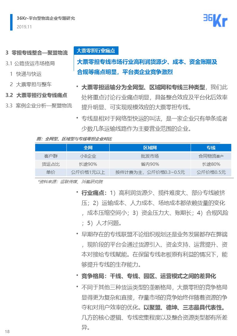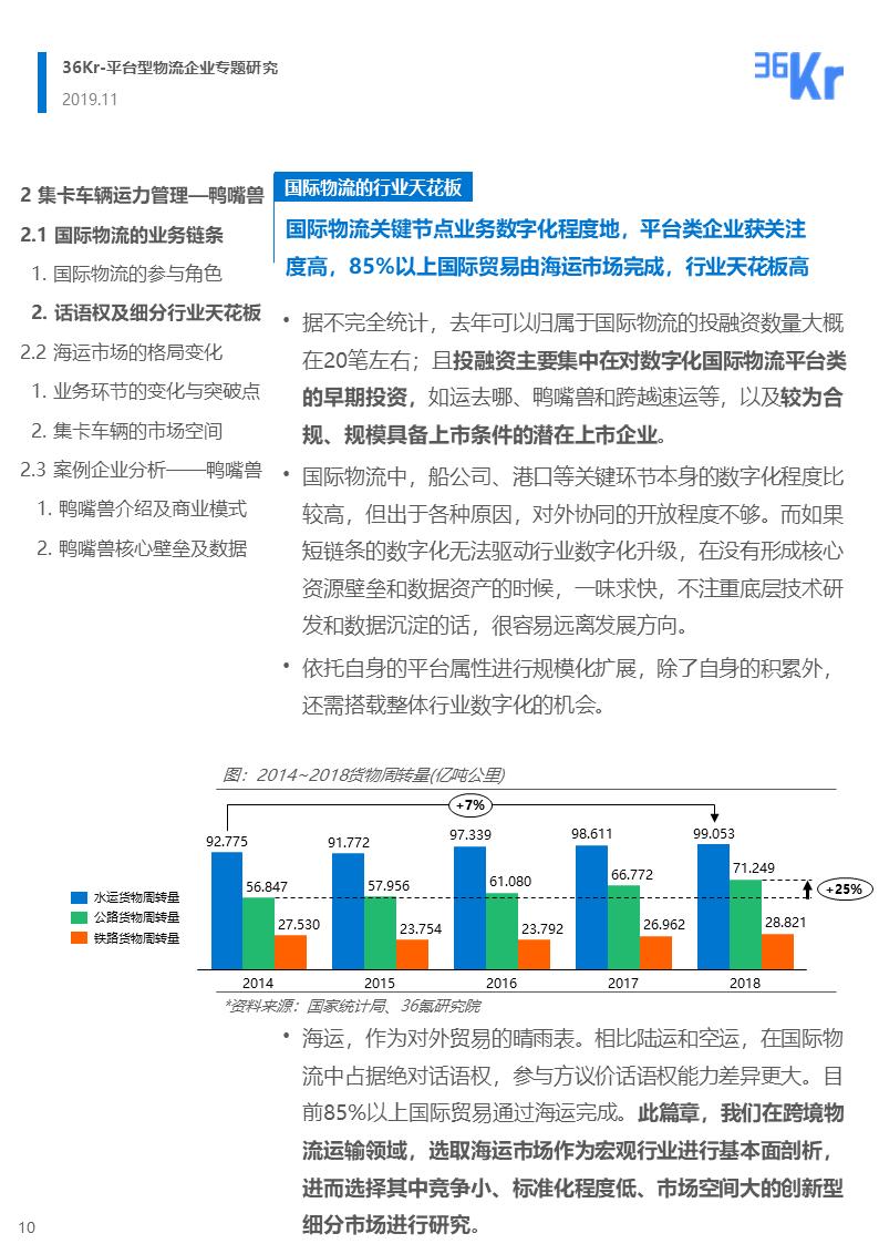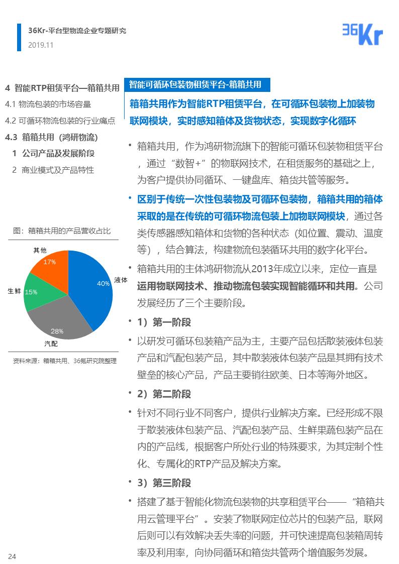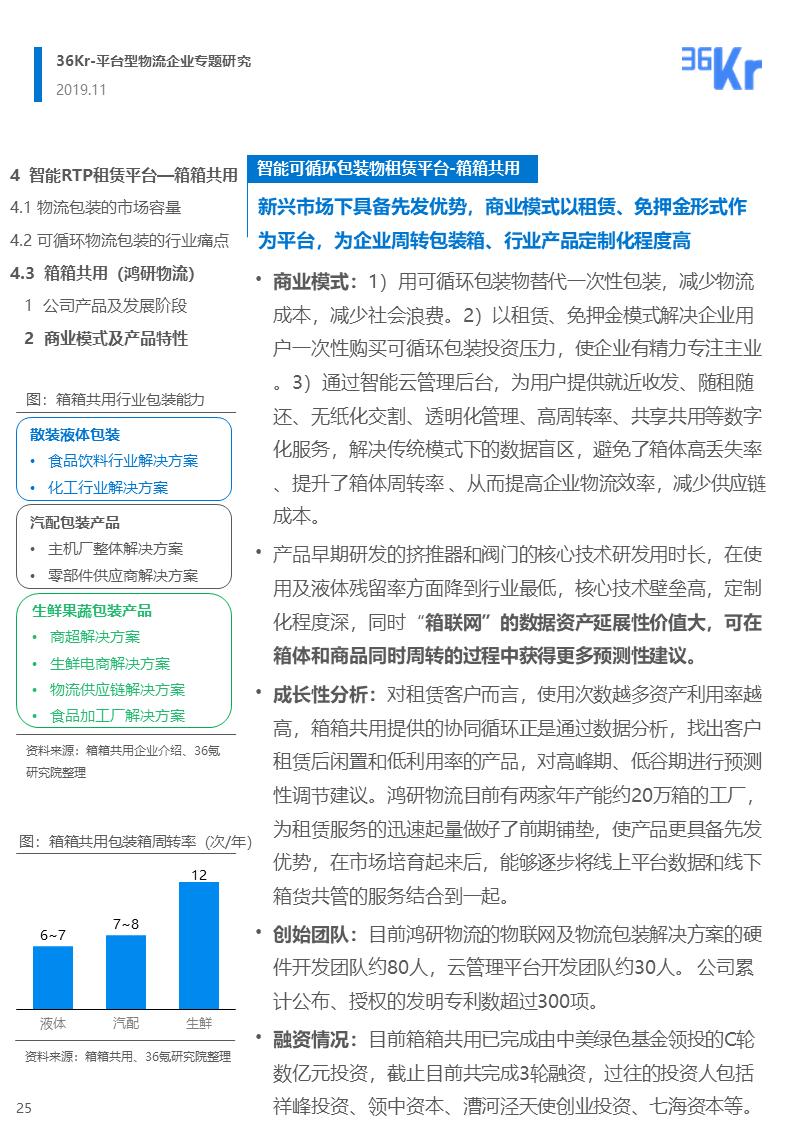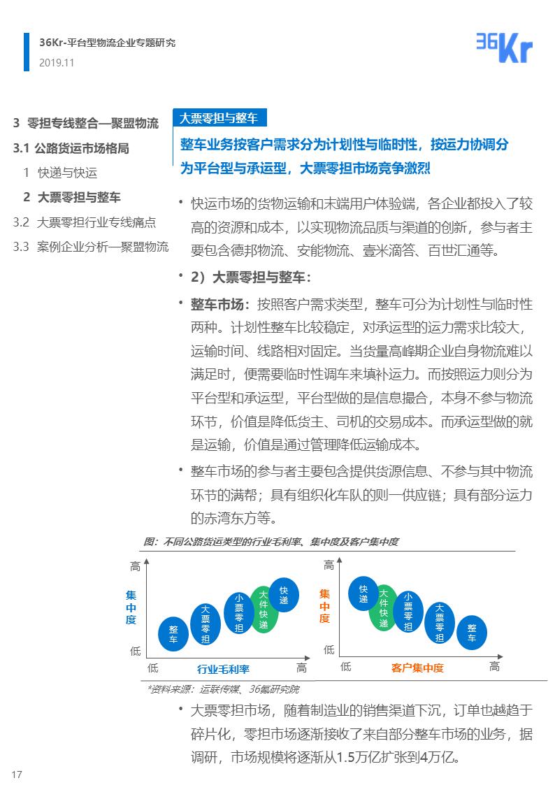 本报告分为五个章节,将分别从国际物流的集卡货运服务、大票零担的专线运输整合、智能可循环包装三个细分行业进行切入,对3家企业进行重点分析。输出我们对平台型企业成长性、主要业务模式、标准化与数据化过程、投资角度、未来趋势等多方面的观点。