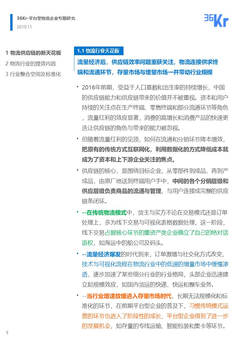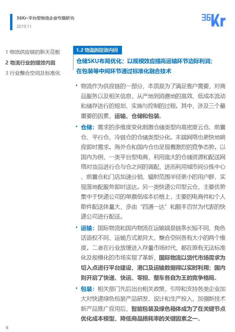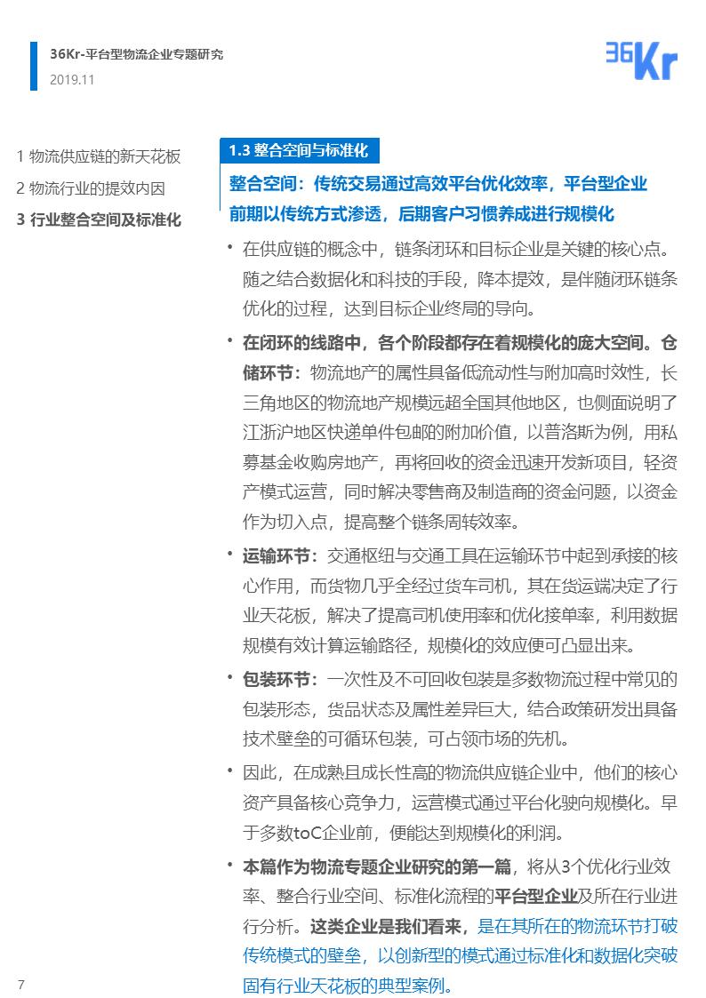 本篇作为我们在物流专题企业研究的第一篇,将从3个优化行业效率、整合行业空间、标准化流程的平台型企业及所在行业进行分析。