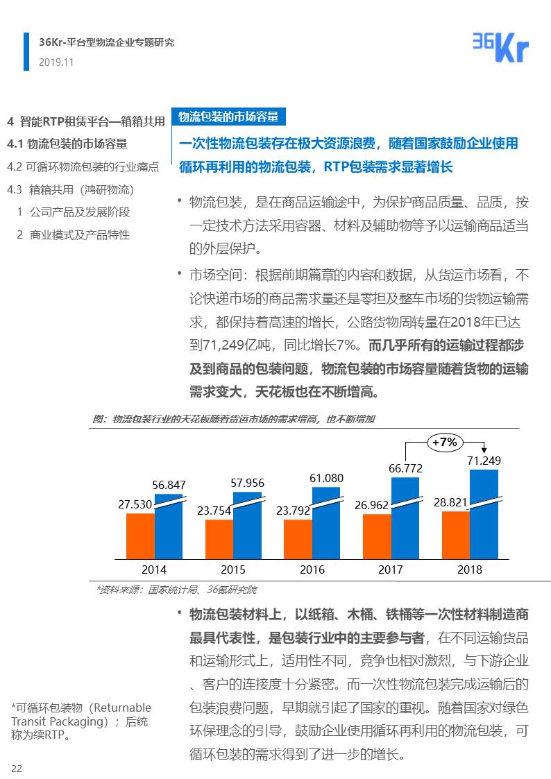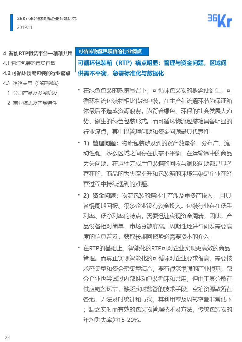 —存量市场时代:长期无法规模化和标准化的环节,在前期平台型企业的普及下,习惯传统模式运营的环节也进入了阶段性的成长,平台型企业得到了进一步的发展机会,如存量的大票零担专线运输、智能可循环包装和集卡等环节。