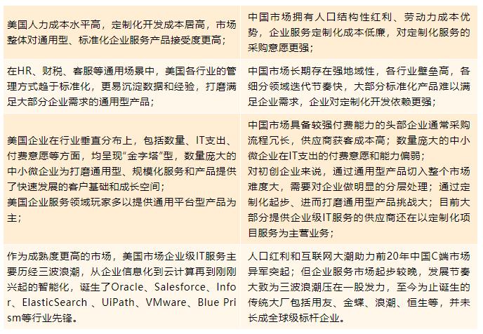 美国与中国企业服务市场具备不同的土壤和基因