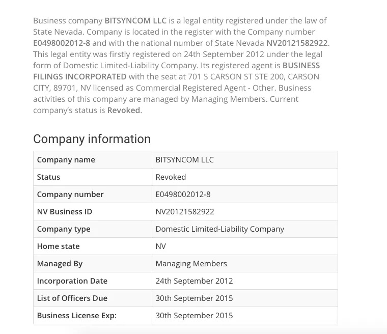 Odaily星球日报查询到,同期阿瓦隆团队在美国也成立了一家公司,名为 BitSynCom LLC,公司管理人只有一人,正是郭逸夫。