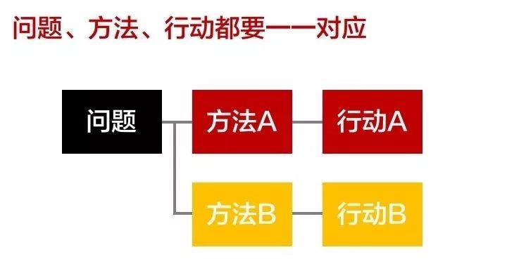 无论遇到什么问题,德国人的思考都遵循“对应原则”。哪个问题对应哪些解决方法,每个解决方法中都挑明了要进行什么行动(如下图):