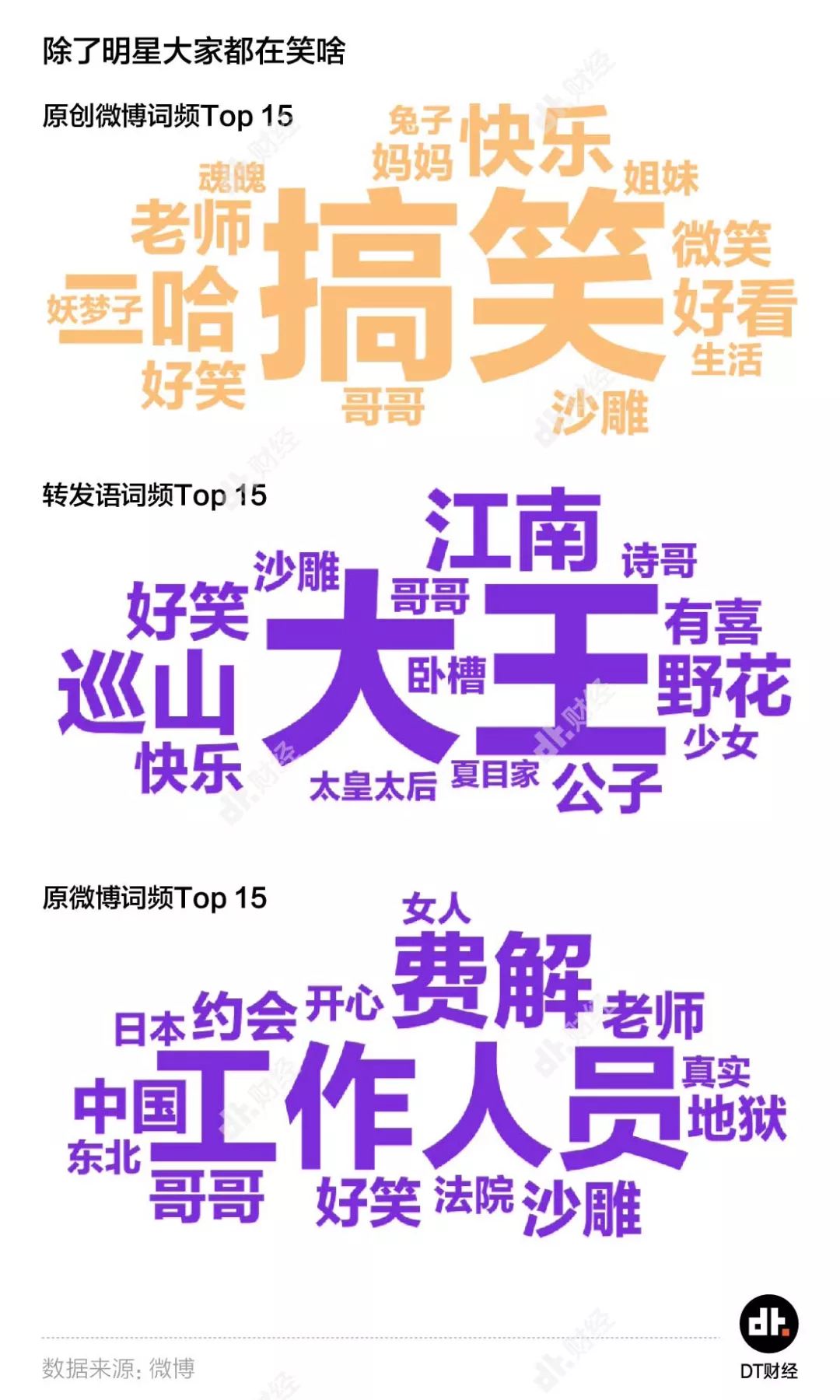 做完分析之后,DT君忍不住流下了一滴清泪——微博的快乐实在是太简单了,很多快乐都是来自于追星。