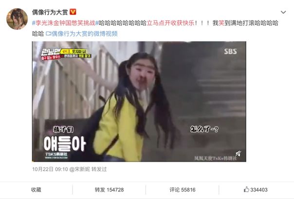 在偶像明星霸榜之余,常年出没于搞笑区的综艺艺人——李光洙、金钟国也出现在了我们的转发排行榜当中,而且位次相当靠前。
