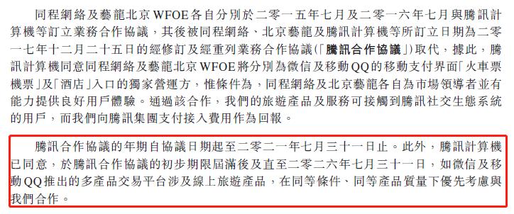 说到这里,也许有人会质疑:微信的流量“红利”同程艺龙还能吃多久?这显然是多虑了。根据同程艺龙招股说明书中披露的资料,腾讯与同程艺龙之间的流量合作协议初步期限届满后直到2026年7月31日,如果微信及移动QQ推出的交易平台涉及在线旅游产品,在同等条件下优先与同程艺龙合作。这就意味着即便合作协议到期,在同等条件下同程艺龙依然会是微信及移动QQ平台在线旅游服务领域的优先合作伙伴。考虑到腾讯是同程艺龙的第一大股东,双方在流量方面的合作协议期限也就没有那么重要了。