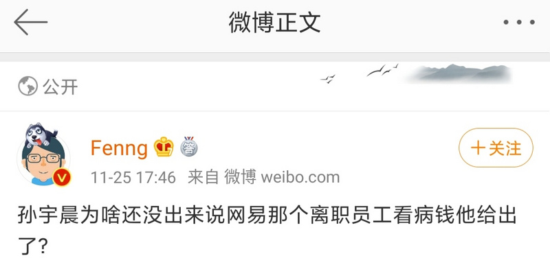 25日晚上8点,孙宇晨在微博宣布自己对该网易员工的援助方案。