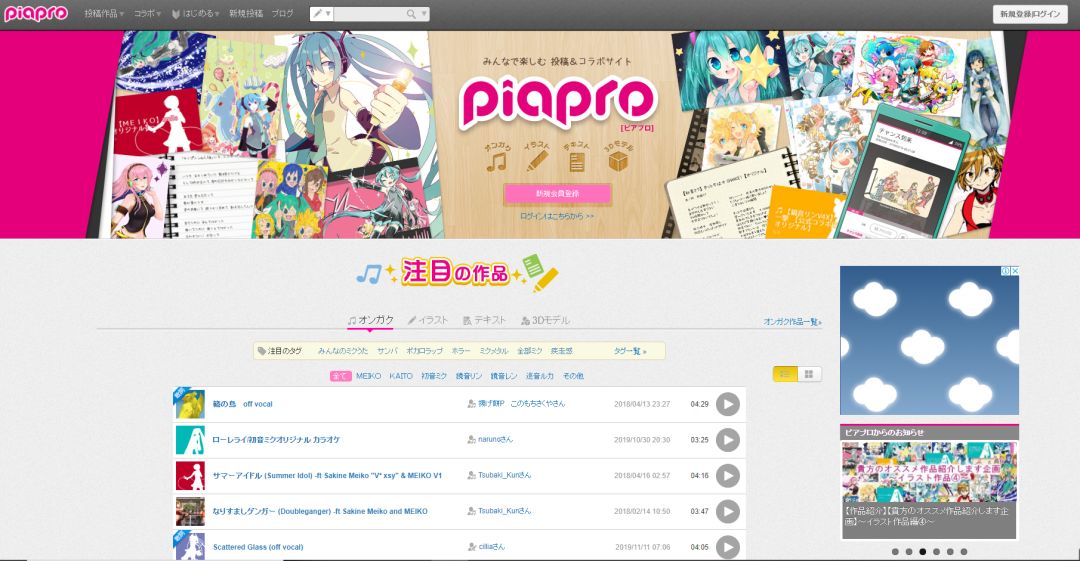 其次,对于普通创作者所创作的初音未来作品的版权问题,公司还开发了投稿平台PIAPRO。投稿作品包括画作、音乐、视频等,为原创者与被授权方提供了良好的联动平台。仅该平台于2017年上线的中文版面POPPRO,截至2018年就已有近5万名注册用户,上千名创作者,网站投稿数约5000件。