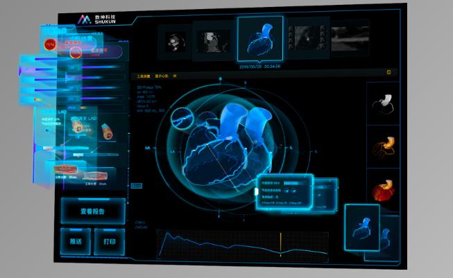 睿心智能医疗也开发出了一整评估心血管供血功能的诊断软件。仅需要病人的心脏CT影像,便可准确地推算出血管的供血功能并生成诊断报告。