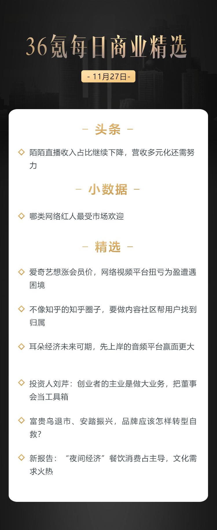 本文来自36氪付费栏目《36氪每日商业精选》——11月27日