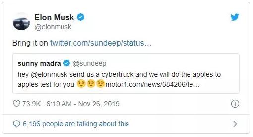 11月26日,后者终于“忍无可忍”,对特斯拉皮卡下了战书: