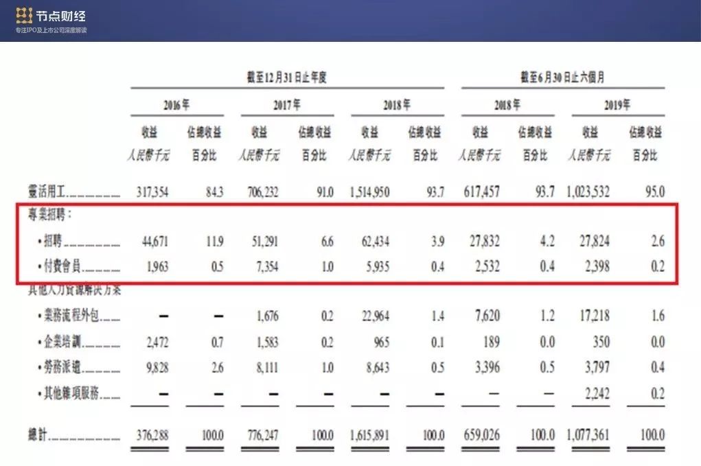 其次,在人瑞人才的招股书中,也提到了公司的O2O业务——香聘,称竞争对手由申请至面试转化率在5-15%,而该公司为50%。这一数字看起来较为乐观,但却有一些业内人透露,实际的贡献主要还是线下外包模式下的转化率。
