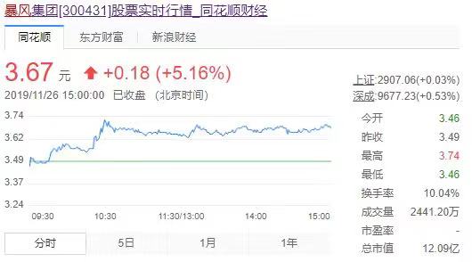 截止11月26日收盘,暴风的股价为3.67元/股,市值仅有12.09亿元,与巅峰时期的400亿市值相比,缩水高达97%。