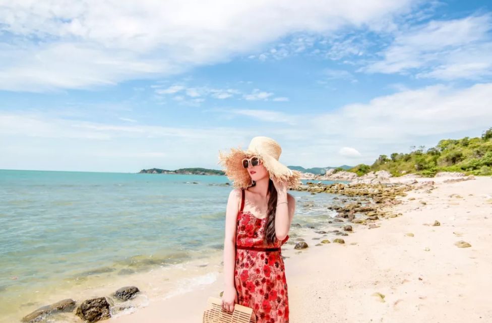 枕着海浪的声音沉沉睡去,脚尖浸润在浩瀚无边的海洋上,梦里都是白天的欢声笑语,一对穿着婚纱的情侣相拥而笑,阳光印在脸上,金色的眼影反着光。