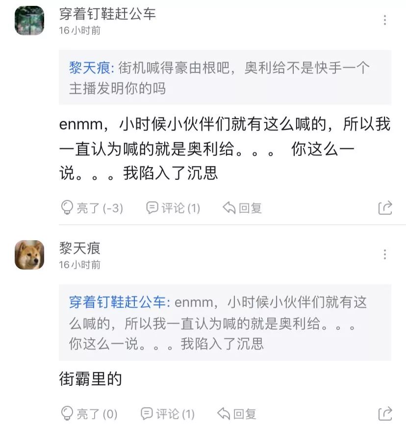 有趣的是,更多的网友都是将这句口号打做“奥利给”,而这位自称是创始人的老铁,则是写作“奥力给”。这种细微的差别,或许只是输入法的锅。