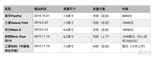 ▲已发布的折叠屏手机