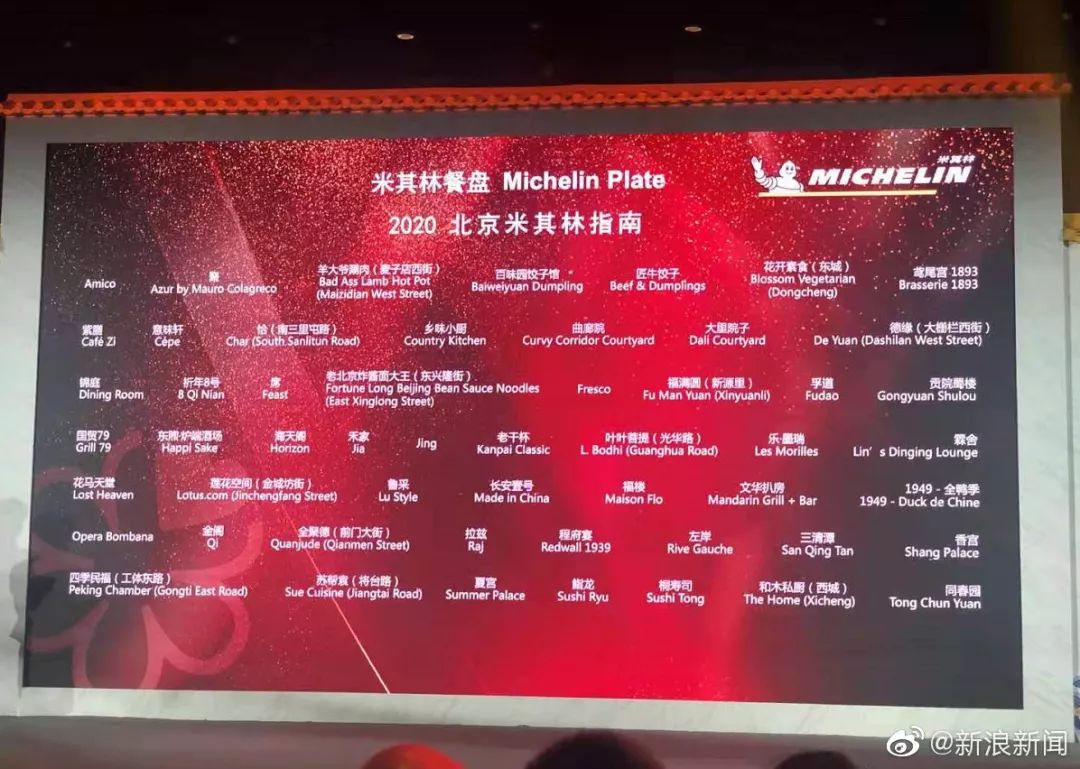 11月28日,《米其林指南2020北京》公布。新荣记(新源南路)成为榜上唯一一家米其林三星餐厅,京兆尹、屋里厢获得二星,大董等21家餐厅成为米其林一星餐厅。