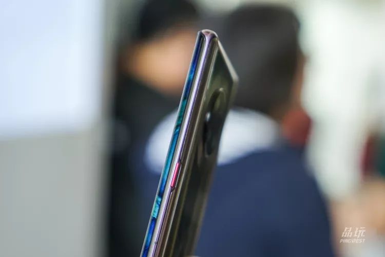 大家给它取了一个好听的名字——“瀑布屏”(Waterfall Display),实际上是曲面屏的进阶版本。以华为 Mate30 Pro 为例,它的屏幕侧边弯曲度达到了 88°,正面视角几乎看不见边框。同时华为取消了实体音量键,转而用敲击侧边屏幕,呼出音量条的方式进行音量调节。