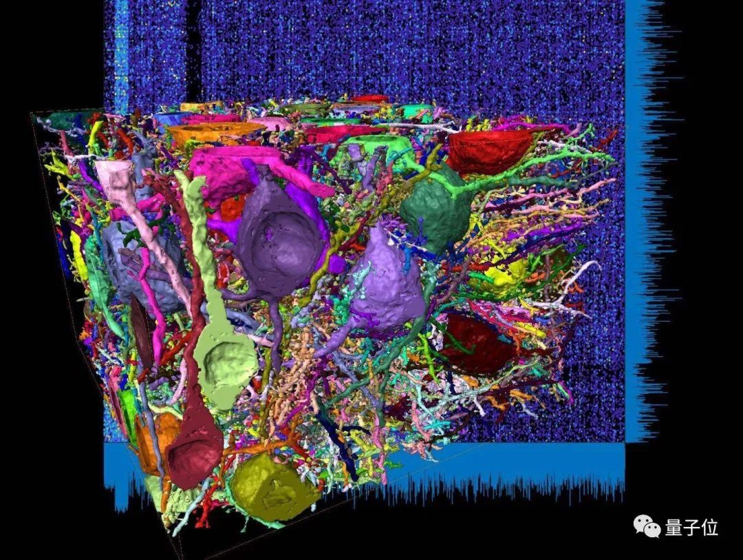 而且此次的研究所覆盖的区域,比早期的神经解剖映射尝试的方法大了整整两个数量级,是以前哺乳动物大脑皮层致密重建体积的300倍。