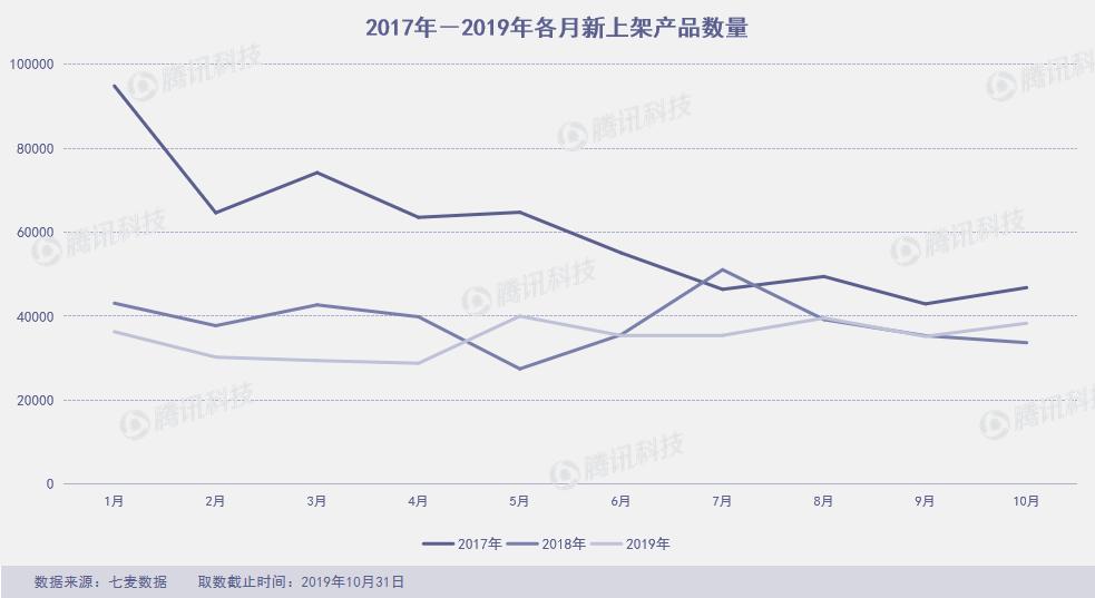 10月上架3.8万新产品,相比9月(3.5万款)增长9%。