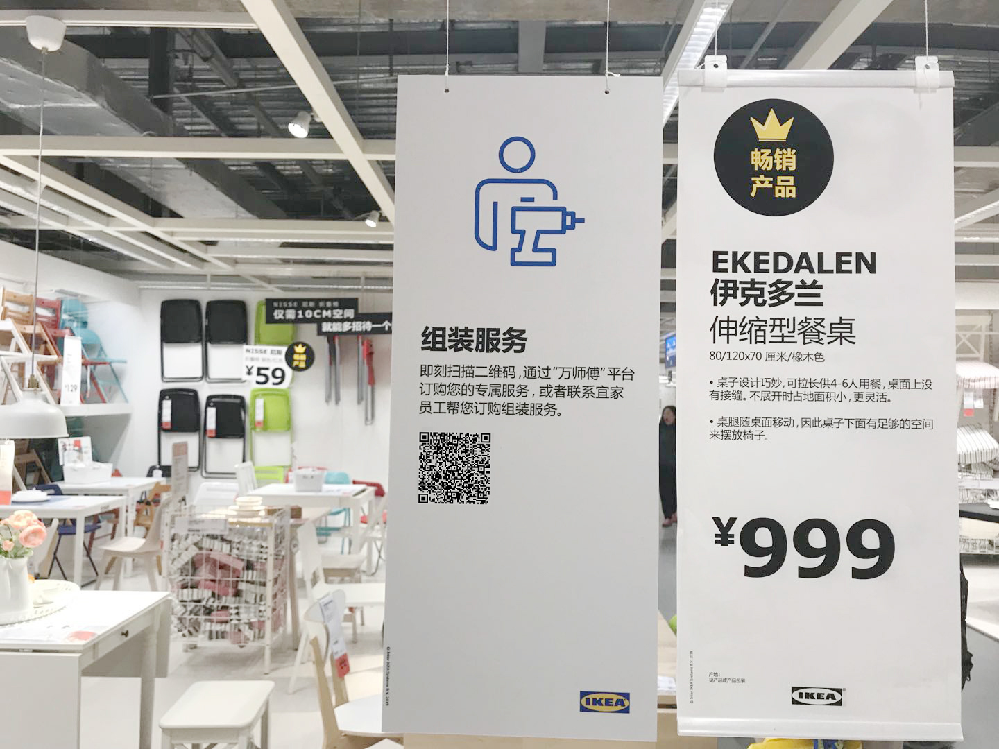 另一种家居企业采用商场模式,例如宜家,在中国一、二线城市共开设了31个大型商场。作为传统家居企业,宜家近年来逐步通过互联网转型升级,线上电商业务已经开通227个城市。宜家自有售后师傅覆盖实体商城所在区域,同时选择与万师傅合作,不仅为线上商城购买家具的消费者推荐使用万师傅,线下商场也贴上了万师傅的二维码,将覆盖全国的便捷售后服务推到顾客面前。