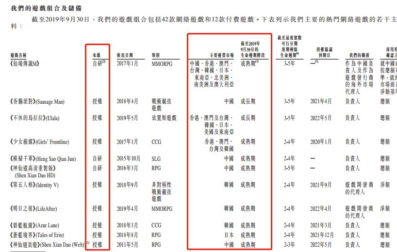 招股书显示,发展多年,心动网络已拥有一个横跨不同类型的多元化游戏组合。截至2019年9月30日,公司的游戏组合包括42款网络游戏及12款付费游戏。