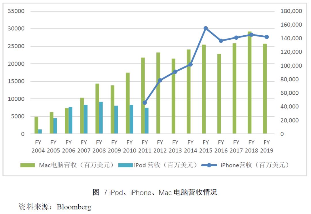 从收入结构看(图 1),iPhone手机依然是苹果公司最大的营收来源,由于苹果公司销售收入对手机业务的高度依赖,一旦手机销售不佳,苹果公司市值便会出现较大幅度的波动。