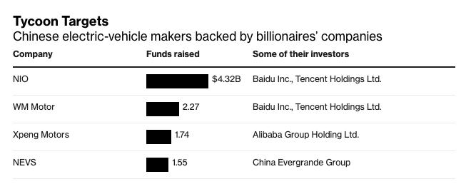 中国富豪马云、马化腾、李彦宏、许家印的旗舰公司赌定,电动汽车将成为“带轮子的智能机”,能够把乘客连接到公司的其他业务上。但是如今,他们越来越难以从这一押注中谋取利润。他们的注资,以及总计融资180亿美元的数十家创业公司一起加剧了电动汽车泡沫。现在,这一泡沫似乎陷入了将要破裂的危险境地。