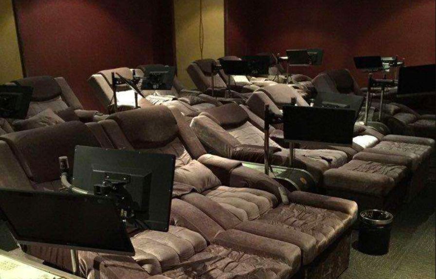 △现在甚至有很多影厅内部都用按摩椅当座位