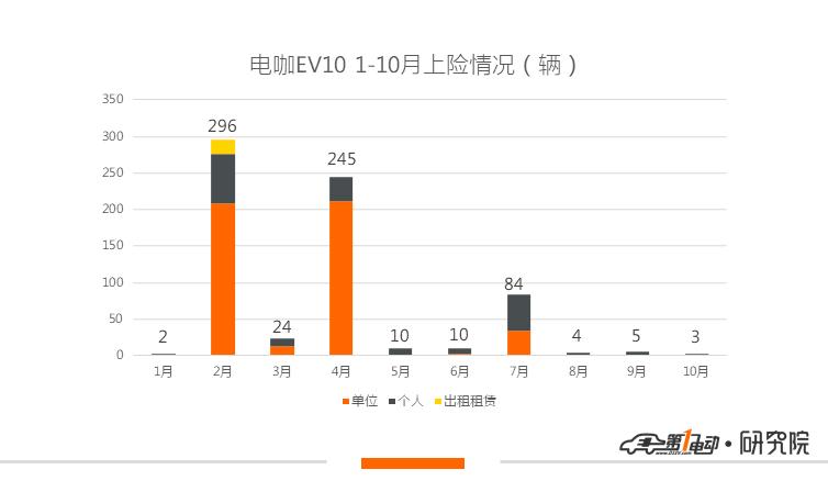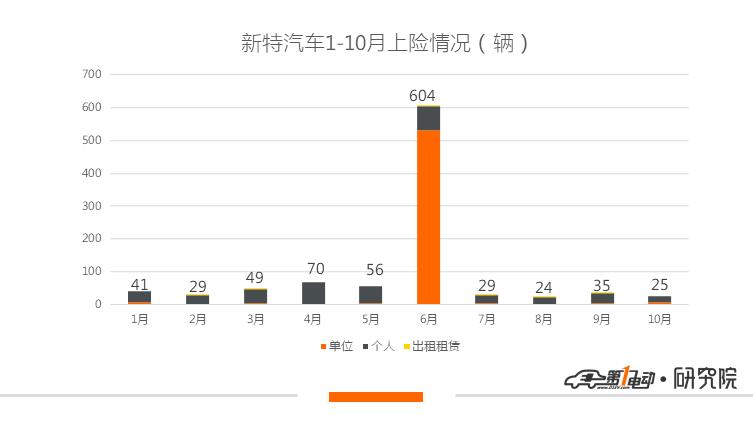 奇点和赛麟1-10月都仅有个位数的上险量且都为单位上险,不同的是奇点8辆的成绩依然来自前两个季度iS6的上险,而赛麟迈迈则在9月和10月分别实现3辆和4辆的上险。但与奇点iS6不断跳票的情况不同,赛麟已经于今年双十一上市了迈迈定制版,不过补贴后15.88万起的售价究竟能有多少消费者买账暂且期待一下吧。
